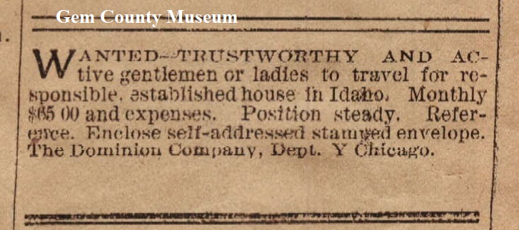 Wanted - Trustworthy and Active Gentlemen or ladies . . .